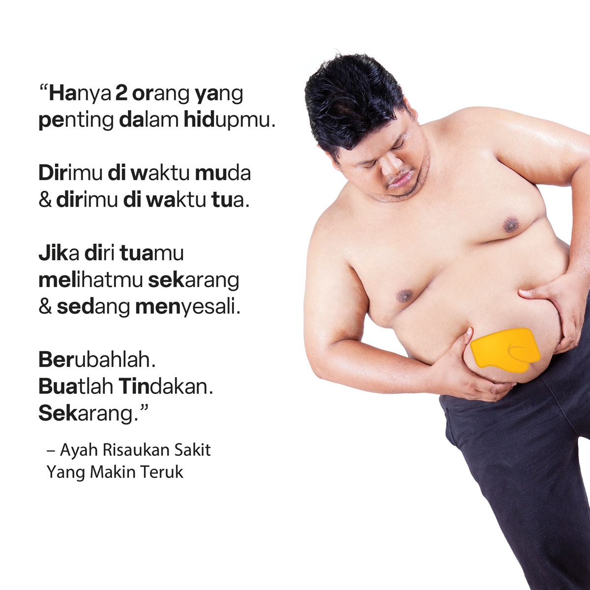 Perut buncit menandakan lemak sudah menempel di organ penting seperti hati, buah pinggang, dan pankreas.